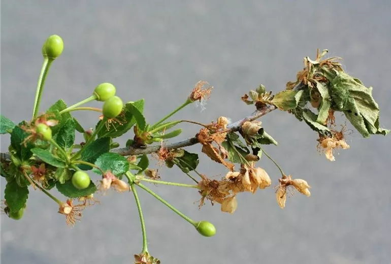 Monilia-Spitzendürrre an Sauerkirschen