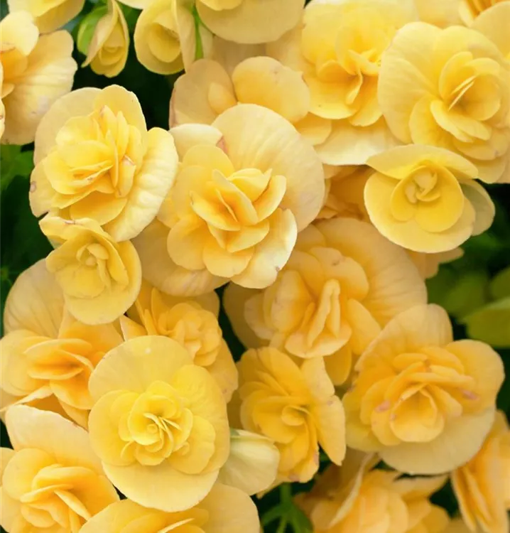 Begonia elatior, gelb bildet während der gesamten Saison zahlreiche schalenförmige, gelbe Blüten.