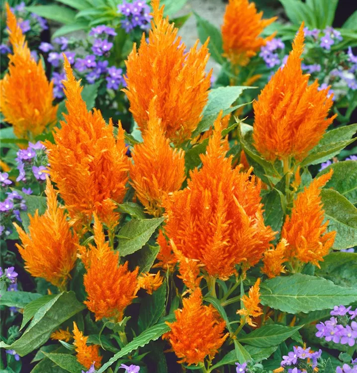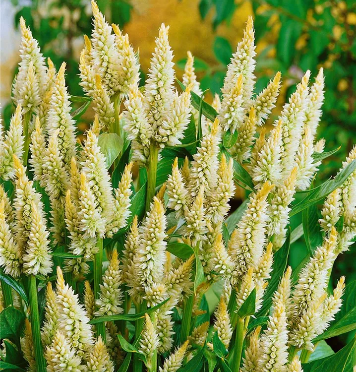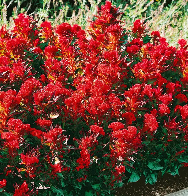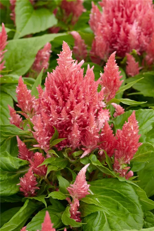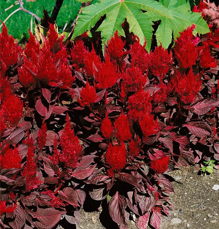 Der Silber-Brandschopf (Celosia argentea) blüht über Monate hinweg. Je nach Sorte, erscheinen die dekorativen Blüten in den Farben Cremeweiß, Gelb, Orange, Rot und Rosa. Bevorzugt wird ein halbschattiger Standort und eine durchlässige Erde.
