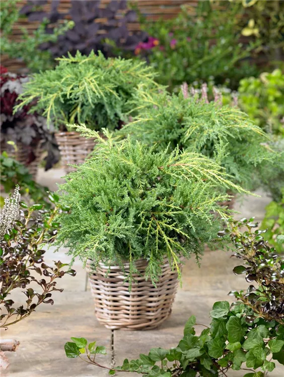 Pfitzer-Wacholder 'Gold Star' ist ein breit und dicht wachsender Strauch oder Kleinstrauch. Er erreicht gewöhnlich eine Höhe von 50 - 60 cm und wird ca. 2 - 2,5 m breit.