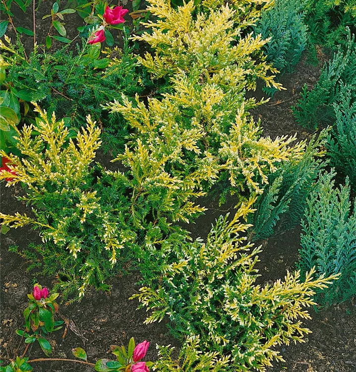 Der Pfitzer-Wacholder 'Gold Star' ist immergrün. Seine Nadeln sind goldgelb, schuppenförmig. Pfitzer-Wacholder 'Gold Star' zeigt sich leuchtend gelb-grün im Herbst.