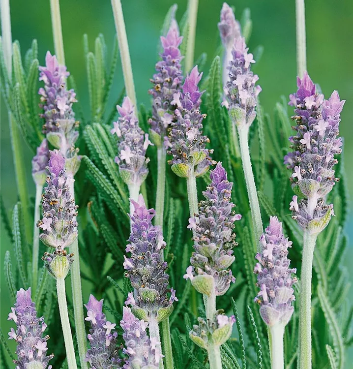 Lavandula dentata bildet lilafarbene Blüten ab Juni.