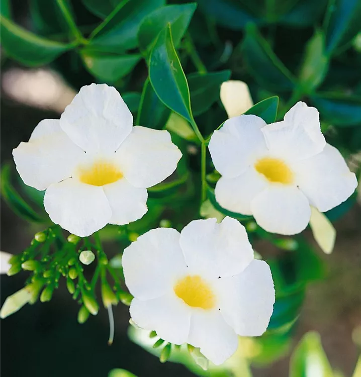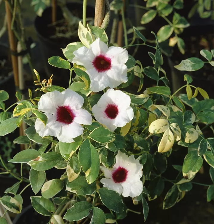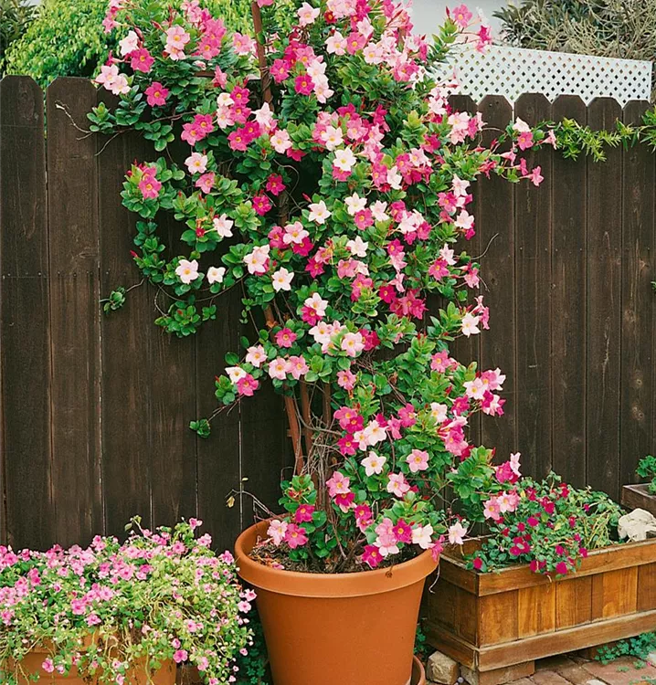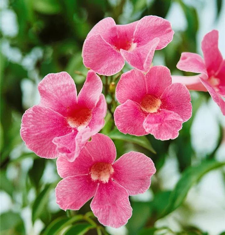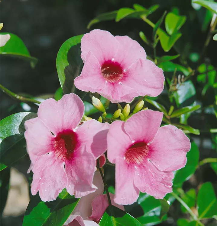 Die Rosa Pandorea (Pandorea jasminoides) ist eine sehr beliebte Kübelpflanze. Ihre dekorativen Blüten erscheinen von Juli bis August. Verwenden Sie bevorzugt die spezielle Kübelpflanzenerde, denn sie verdichtet sich über längere Zeit nicht.