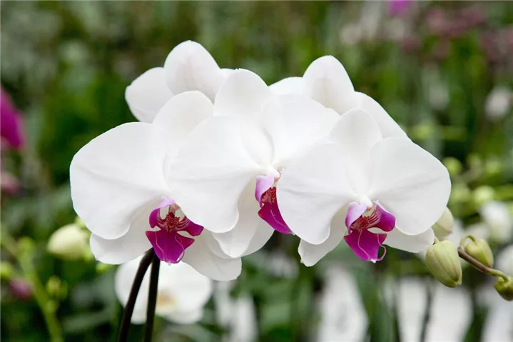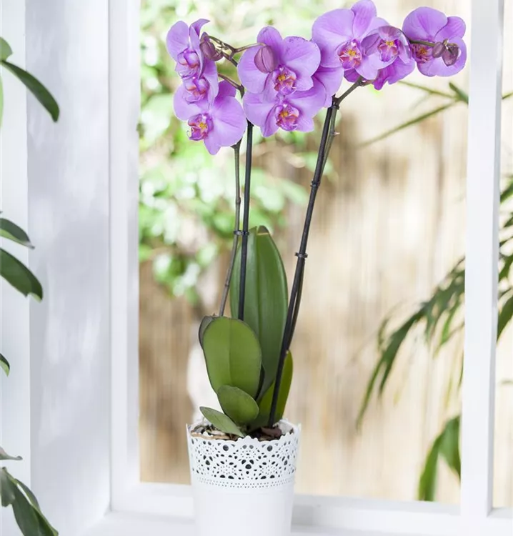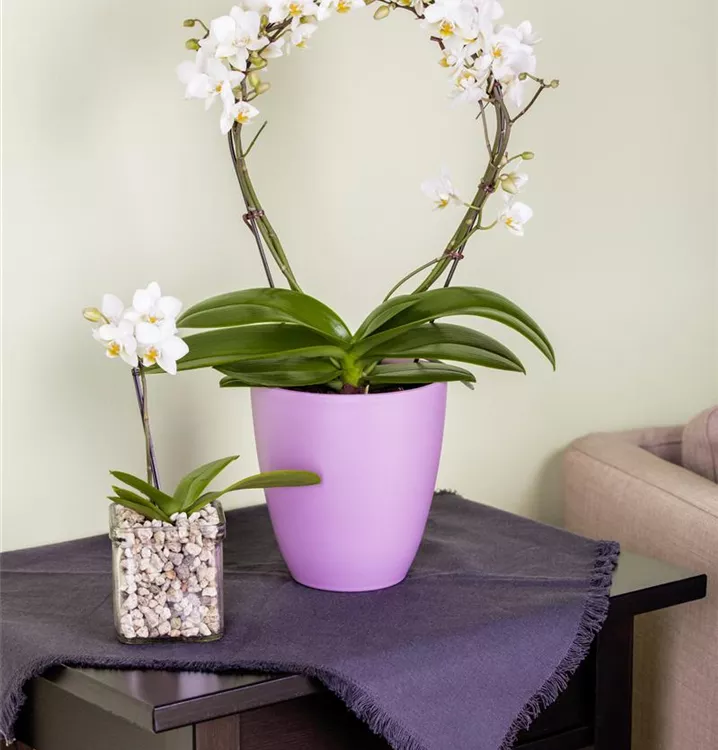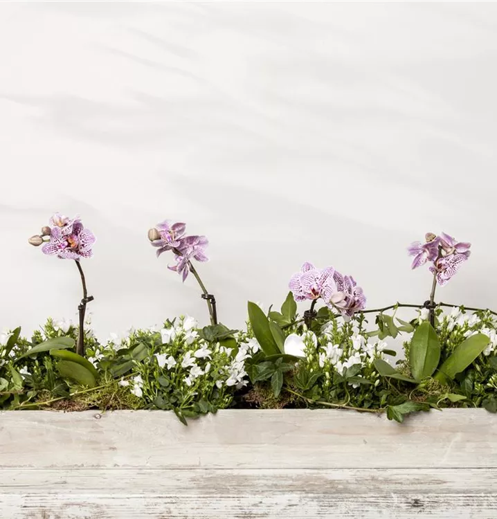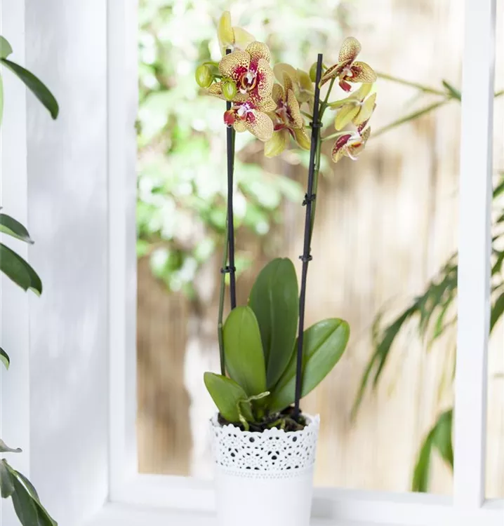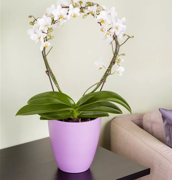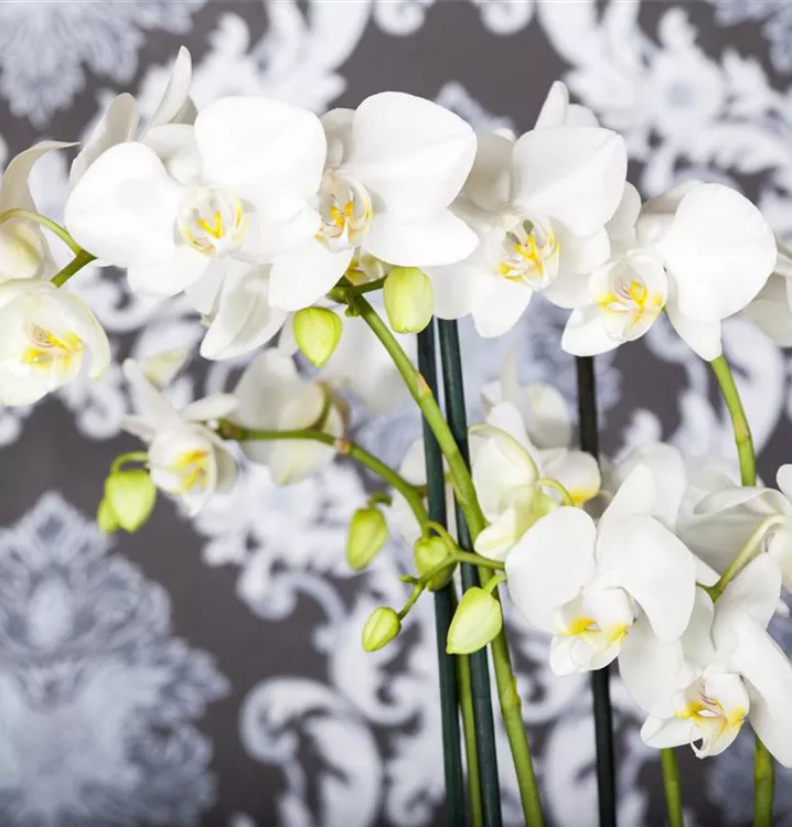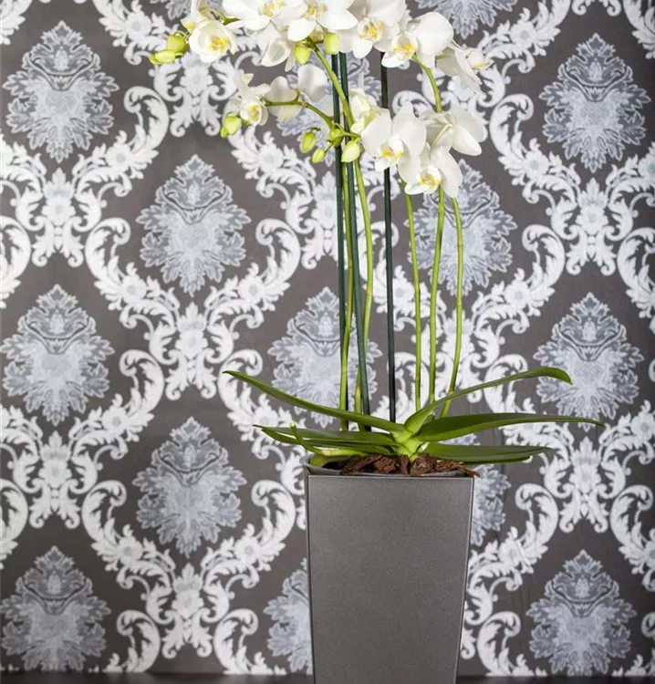 Die Schmetterlingsorchidee (Phalaenopsis) ist eine schöne, in verschiedenen Farben blühende Orchidee. Ihre lippenförmigen Blüten sind sehr dekorativ und erscheinen in Rispen von Januar bis Dezember. Für das optimale Wachstum sorgen ein heller Standort sowie ein spezielles Orchideen-Substrat.