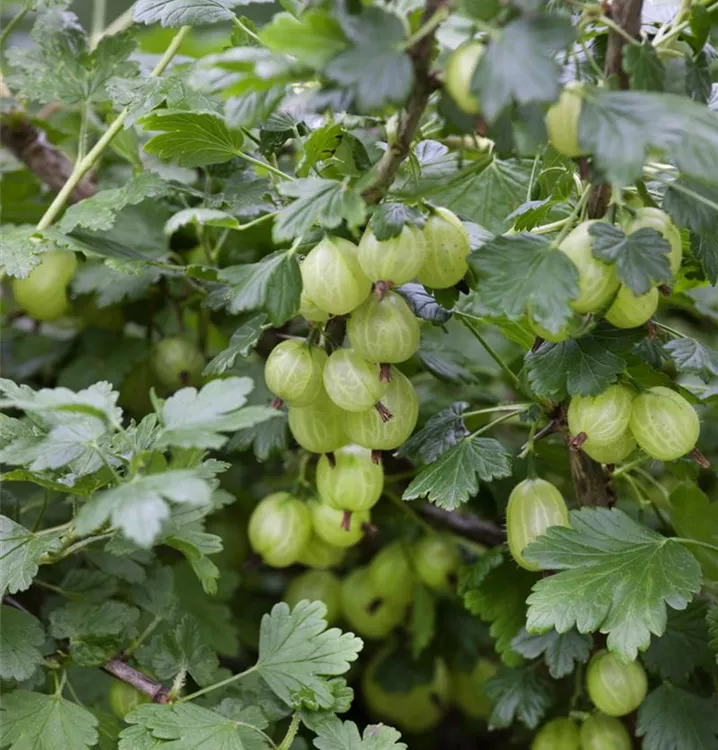 Die Stachelbeere (Ribes uva-crispa) bildet grüngelbe Beeren. Diese sind süß im Geschmack. Für eine ertragreiche Ernte ab Juli schaffen durchlässiger, lockerer, nährstoffreicher Boden und ein sonniger bis halbschattiger Standort optimale Bedingungen. Auch ihre weißen Blüten sind eine schöne Erscheinung.