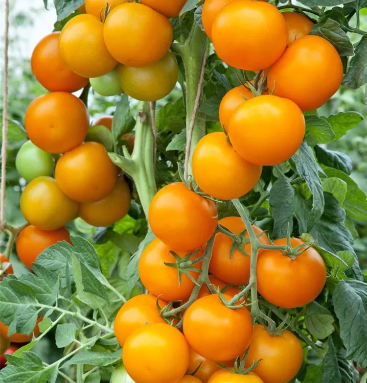 Die Tomate (Solanum lycopersicum) bildet Früchte, die aromatisch schmecken und bereits ab Juli geerntet werden können. Für das optimale Wachstum der Tomate werden ein sonniger Standort und durchlässiger, nährstoffreicher Boden benötigt.