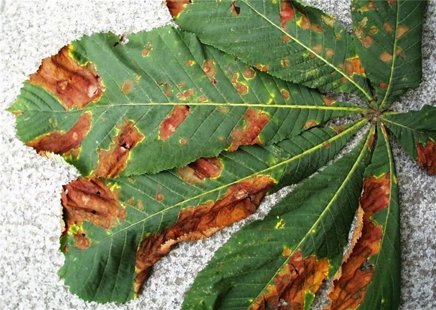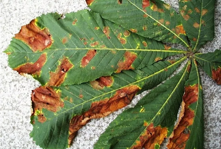 Ein ähnliches Schadbild verursacht die Kastanienminiermotte.