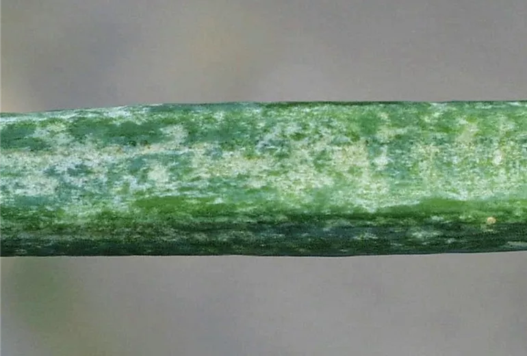 Durch die Saugtätigkeit des Zwiebelthripses (Thrips tabaci), eines ca. ein Millimeter langen, schmalen Insektes, entsteht das genannte Schadbild. Günstige Entwicklungsbedingungen findet dieser Schädling in warmen Sommern, in denen es auch zu stärkerem Befall kommt.
