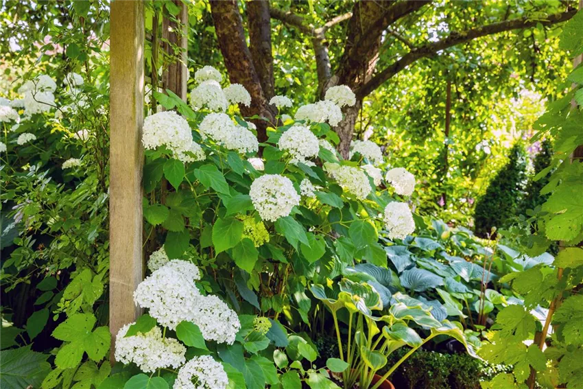 Die Schneeball-Hortensie ist in Nordamerika beheimatet und bildet die größten Blütenstände unter den vielen Exemplaren der Hortensien. Je nach Sorte können sie einen Durchmesser von bis zu 25 Zentimetern erreichen, was für viele Zweige schon eine große Last werden kann.