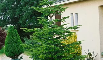 Die Nordmannstanne (Abies nordmanniana) ist ein Gehölz, welches breit, pyramidal wächst und gewöhnlich eine Höhe von ca. 30 m und eine Breite von ca. 9 m erreicht. Ihre nadelförmigen Blätter haben eine dunkelgrüne Färbung. Dieses Gehölz ist gut frostverträglich. Sie bevorzugt durchlässigen, nährstoffreichen, lehmigen Boden in sonniger bis halbschattiger windgeschützter Lage.