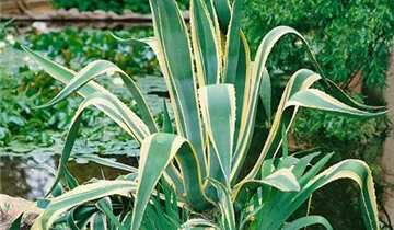 Die Amerikanische Agave 'Variegata' (Agave americana) ist eine sehr beliebte Kübelpflanze. Verwenden Sie bevorzugt die spezielle Kübelpflanzenerde, denn sie verdichtet sich über längere Zeit nicht.