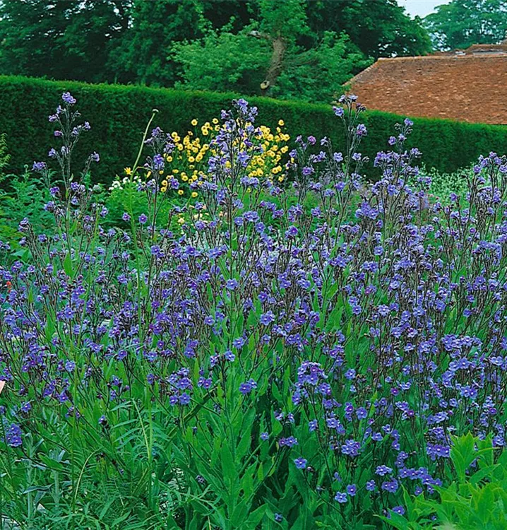 Anchusa azurea bildet trichterförmige, in Rispen angeordnete, blaue Blüten ab Juni.