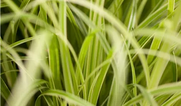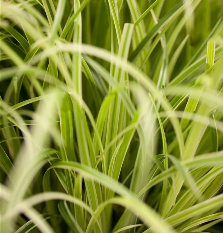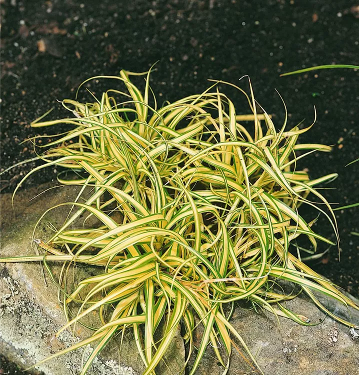 Die Gelbgrüne Garten-Segge 'Evergold' (Carex oshimensis) ist mit ihrer gelbbunten Blattfärbung ein dekoratives Gestaltungselement im Garten, welches sich an einem halbschattigen bis schattigen Standort mit einem möglichst durchlässigen, lockeren Boden am wohlsten fühlt. Die gelben Blütenwedel schmücken die überhängend und aufrecht wachsende Pflanze ab Frühling. Bei günstigen Bedingungen erreicht dieses winterharte Gras eine Höhe von ca. 30 cm und wird bis zu 35 cm breit.