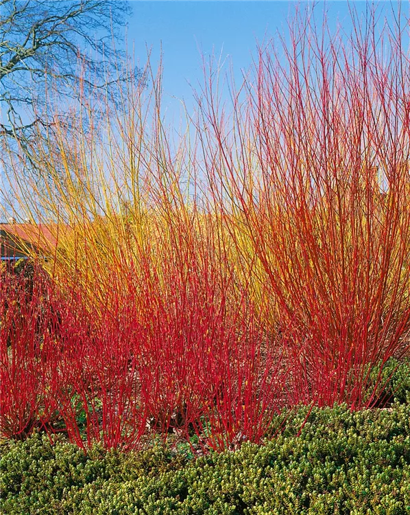 Um die intensive Rindenfärbung im Winter zu erhalten, werden im Frühling vor dem Austrieb werden alle Triebe, die älter als drei Jahre sind, entfernt. Ist der ganze Strauch veraltet und verkahlt, wird er am besten komplett 10 bis 20 cm über dem Boden gekappt.