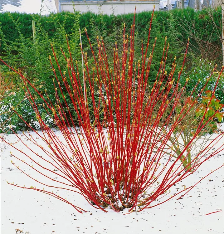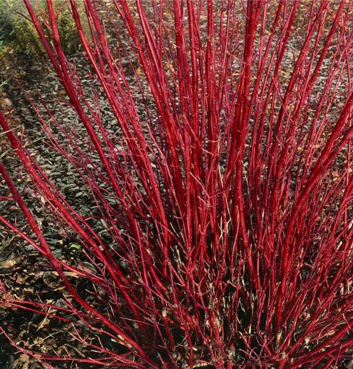 Die Triebe von Cornus alba sind blutrot.