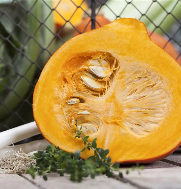 Der Gartenkürbis (Cucurbita pepo) bildet Früchte, die aromatisch schmecken und bereits ab September geerntet werden können. Für das optimale Wachstum des Gartenkürbises werden ein sonniger Standort und durchlässiger, nährstoffreicher Boden benötigt.