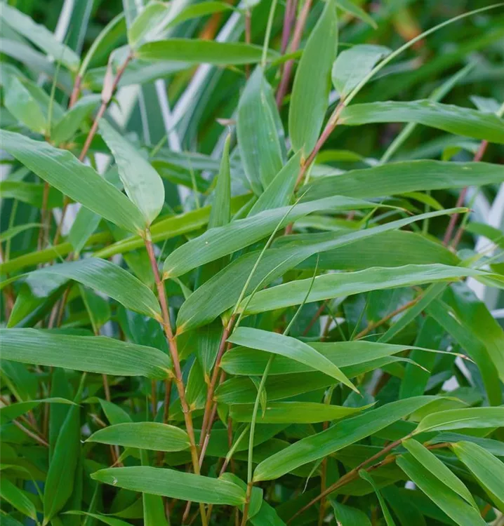 Schirmbambus ist ein horstbildend und überhängend wachsender Großstrauch, der eine Höhe von 3 - 4 m und eine Breite von 3 - 4 m erreichen kann. In der Regel wächst er 1 - 1,5 m pro Jahr.