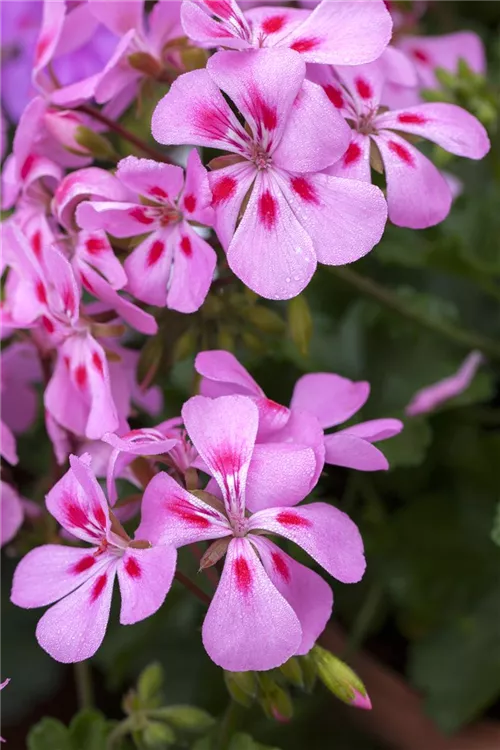Die Zitronen-Geranie 'Citriodorum' (Pelargonium) ist eine beliebte Pflanze für den Balkon. Die unzähligen Blüten erscheinen, je nach Sorte, in verschiedenen Farben die ganze Saison hindurch. Ein sonniger bis halbschattiger Standort und ein durchlässiges Substrat werden bevorzugt.
