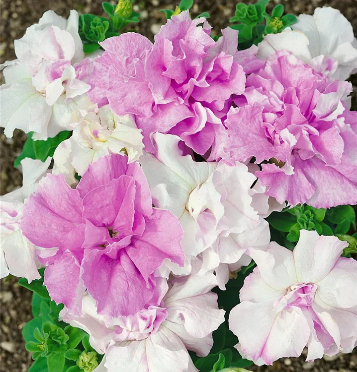 Petunia, double kann eine Höhe von 40 - 60 cm und eine Breite von 40 - 60 cm erreichen.