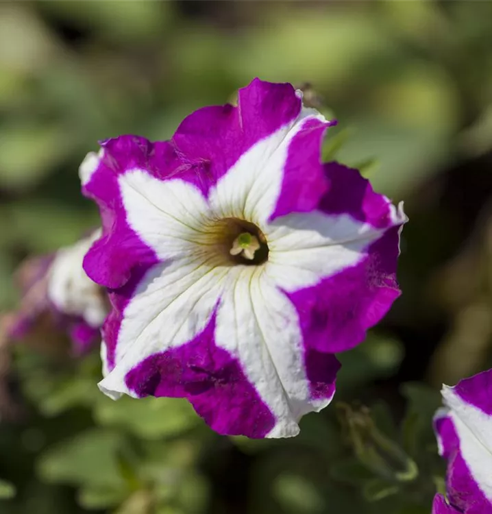 Petunia bildet während der gesamten Saison zahlreiche trichterförmige, bunte Blüten.