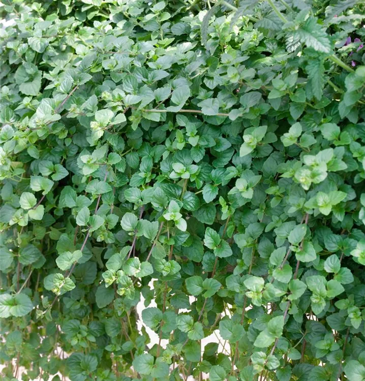 Zum Verzehr geeignet. Die hellgrünen, gewellten Blätter sind rundlich und überzeugen mit minzigem Geschmack.